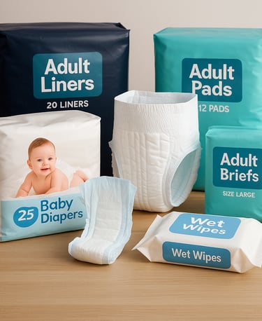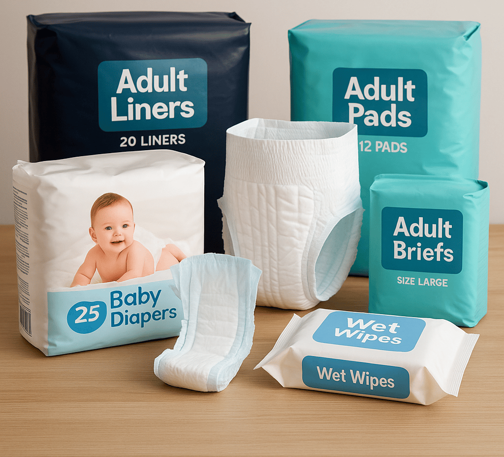 Bebek bezi, hasta bezi, ıslak mendil ve hijyenik ped çeşitleri.