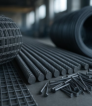 İnşaat sektörüne yönelik çelik hasır, çivi, bağ teli ve metal ürünleri.