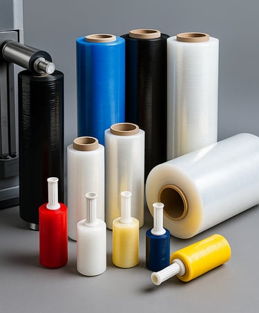 Endüstriyel,jumbo, el tipi ve renkli streç film çeşitleri. Paketleme ve lojistik sektörüne uygun.